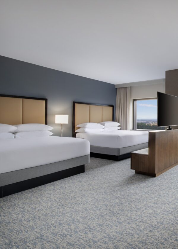Discover 316 well-appointed rooms featuring plush beds, flat-screen TVs, complimentary Wi-Fi, and separate living areas for added comfort. Upgrade to one of our spacious suites to enjoy enhanced amenities, including a separate bedroom and living area, conference table, second TV, and stunning views of Northern Virginia. Every space is thoughtfully designed to provide a relaxing and productive stay.